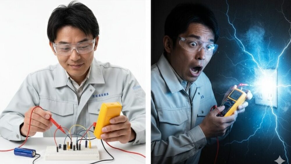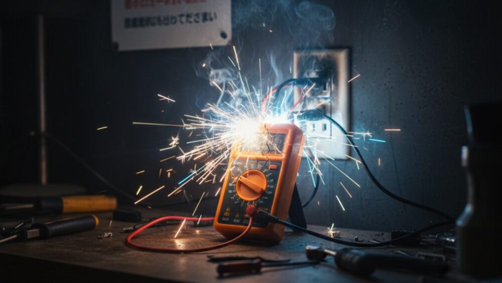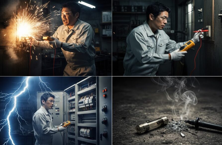 【免責事項】この記事は、電気測定の危険性に関する情報提供を目的としています。実際の作業には感電や火災、爆発などの重大な危険が伴います。本記事の情報を利用した結果生じたいかなる損害(機器の破損、人身事故、火災など)についても、当サイトおよび運営者は一切の責任を負いません。電気工事や測定作業は、関連法規(電気工事士法など)を遵守し、十分な知識と技術を持った方、または有資格者の指導のもとで、ご自身の全責任において行ってください。少しでも不明な点や不安がある場合は、作業を中断し、必ずお近くの電気工事業者や専門家にご相談ください。